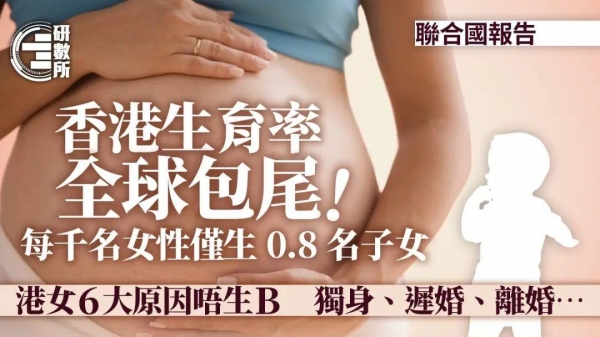 根据联合国人口基金会发布的《2023年世界人口状况》,香港每名妇女平均生育子女的数目为0.8名!