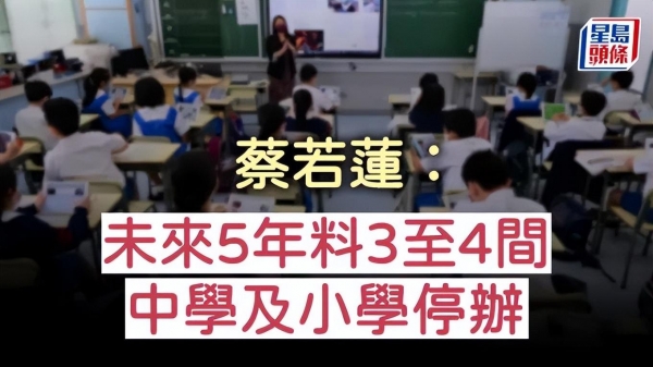 9月1号,教育局局长蔡若莲表示:预计学龄结构性人口下降会持续,未来5年将有3至4间中学及小学陆续停办。
