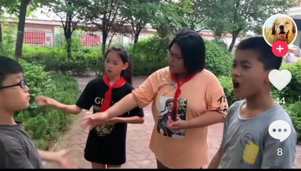 下课后,老师也是记录者。记录下学生的童年游戏--对口型,来唱歌。