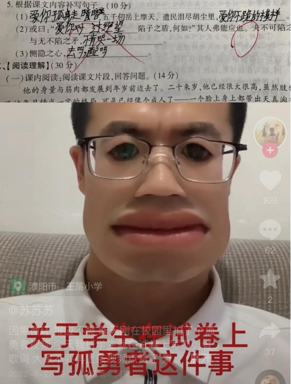 但是,对孤勇者歌词太熟了,似乎也并不是件好事。根据课文内容填空,你怎么也填上了歌词?也太可爱了吧。