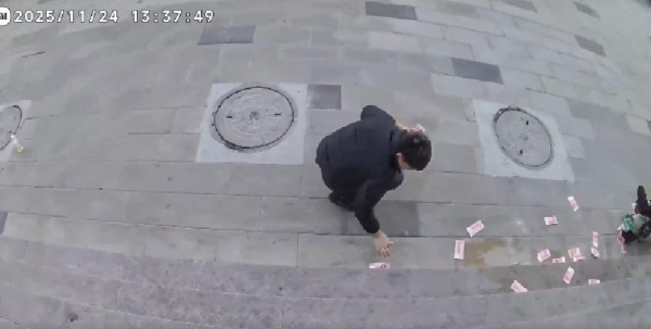 原本这些钱都是一捆一捆的,很好收放,男子还把钱揣在了怀里,理应不会轻易掉出去,可意外还是发生了。