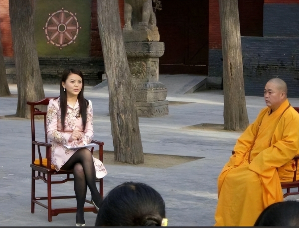 2008年时,她曾以主持人的身份来到登封,和当时已经掌管10年少林寺的释永信面对面畅谈。