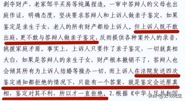 这就很容易推断了:若这两个儿子都是姜洪涛亲生的,为何不敢做亲子鉴定?为何要屡次拒绝呢?