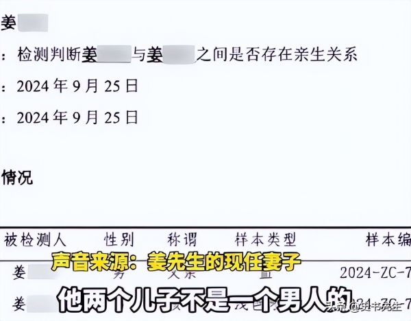 让人不理解的是,姜洪涛做了亲子鉴定之后确认俩儿子非亲生,但小儿子始终未曾露面,大儿子却对此事闭口不谈,坚称是姜洪涛现任妻子挑唆。