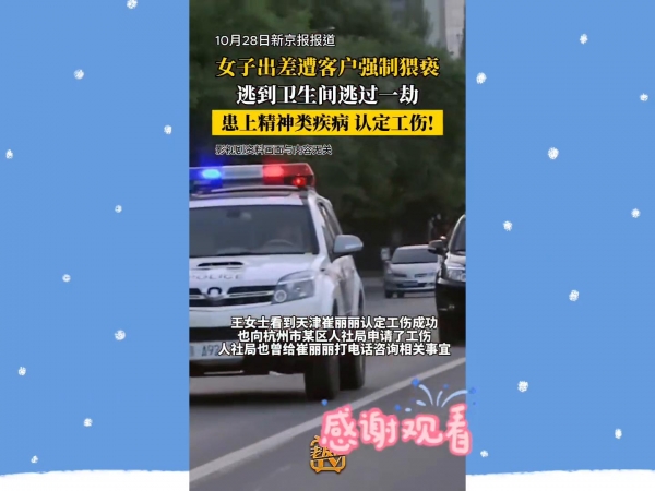 月13日杭州王女士出差遭到客户强制猥亵,之后患上急性应激、创伤后应激障碍,无法上班。王女士的工伤认定结果:人社局也曾给崔丽丽打电话咨询相关事宜,也向杭州市某区人社局申请了工伤。