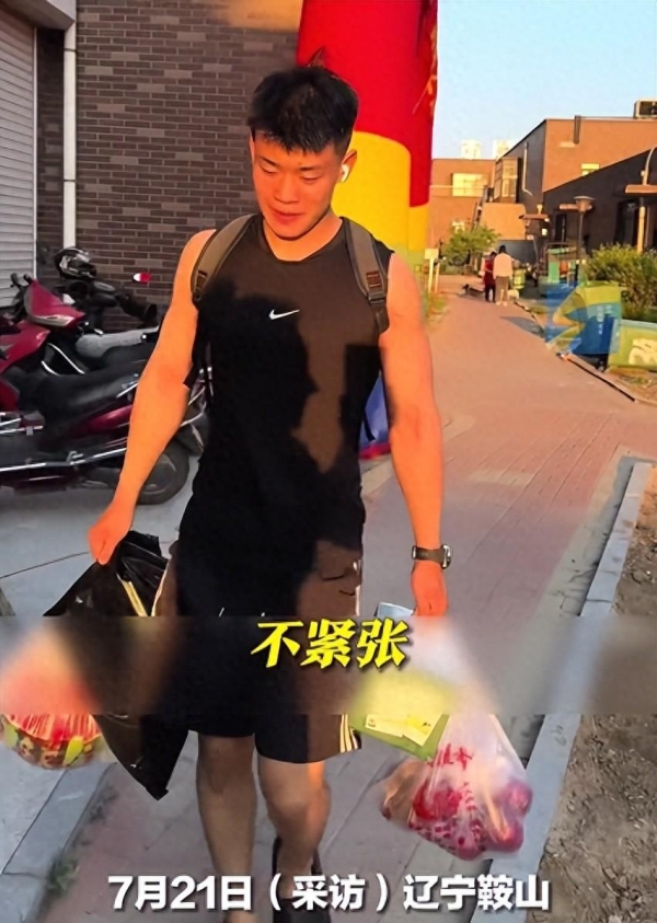 这是该名女子用手机拍摄下小男友跟自己再次回村,手里提着大包小包的食品,走在回女子家里的场景。该名女子问小男友:"紧张吗?"小男友说:"不紧张。平常心紧张啥啊!"