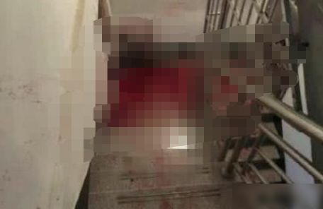 下图为案发楼梯间图片,一片狼藉非常惨烈。