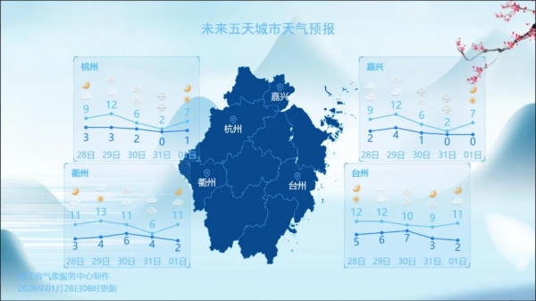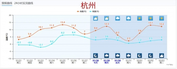 好天气总是暂时的,1月30日至31日,受低涡切变和弱冷空气共同影响,浙江又将迎来一次较明显的降水过程。31日,浙江将达到冷空气影响的顶峰,低温冰冻雨雪齐齐杀到。全省阴有雨,浙西北山区部分有雨夹雪或雪,沿海海面有8-9级偏北风。全省气温将再度下降,看这气温趋势图比过山车还陡。
