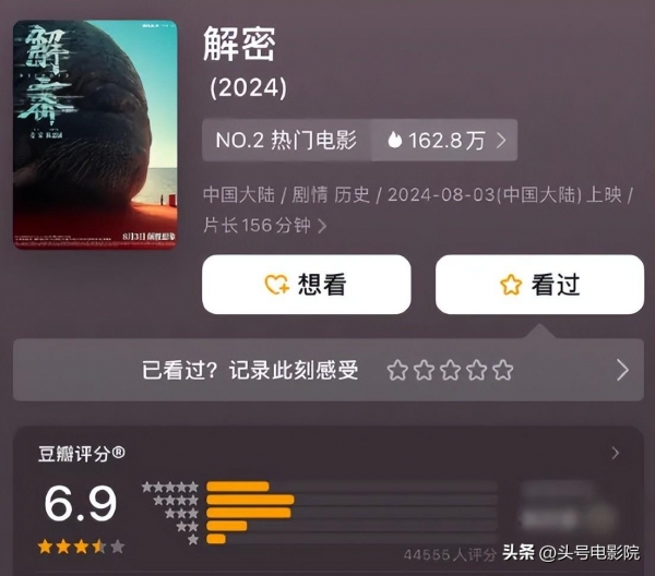 但现在《解密》上映9天,票房还不到3亿,排片已经降到10%以下,注定血亏。
