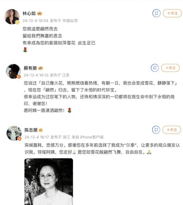 前几日琼瑶的离世让很多网友都非常难过,作为知名作家,琼瑶笔下的作品影视化后曾带给了大家很多美好的回忆,也让大家喜欢上了这一位情感细腻的女作家。在琼瑶离世后,很多曾出演过她作品的演员都纷纷发文悼念,其中不乏有一些一线大咖。