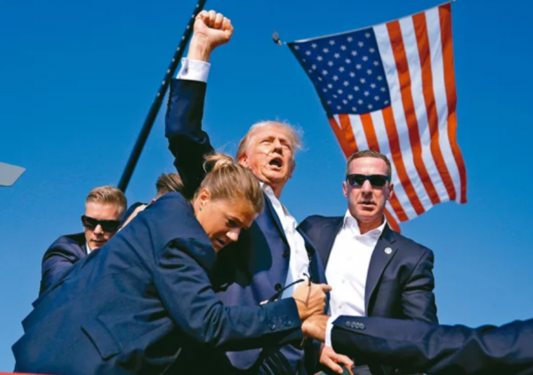 而特朗普在遭遇袭击时的"英勇"表现,反而为他赢得了不少支持。特朗普在被安保人员拉下台时,手握拳头,口喊3次"战斗",刷了一波好感。
