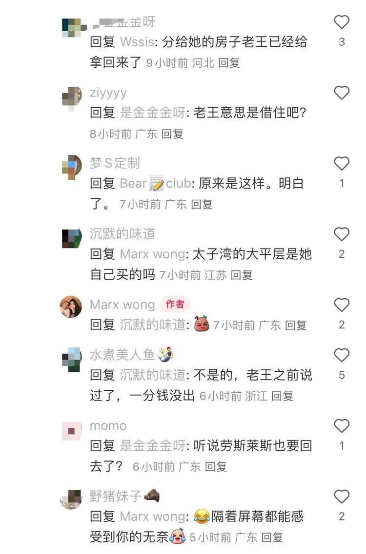 评论区还有网友提到,王命金已经将当时离婚分给她的车房要回,严格意义上来说其实也不是要回,之前是两人离婚时,男方借住给女方的房产,现在只不过是物归原主。