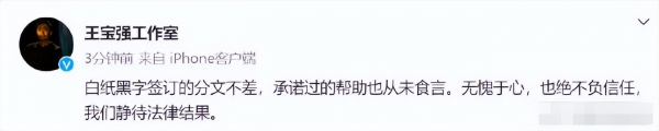 可也也只是俱乐部老板的一面之词,王宝强也没有对这件事情发声,但工作室还是给了明确的回复,一切都是按照白纸黑字签订的分文不差的,承诺过的也并未食言。