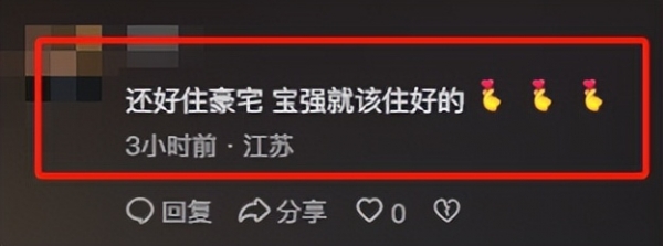 评论区的网友也在力挺王宝强:还好住的是豪宅,王宝强本来就该住好的。