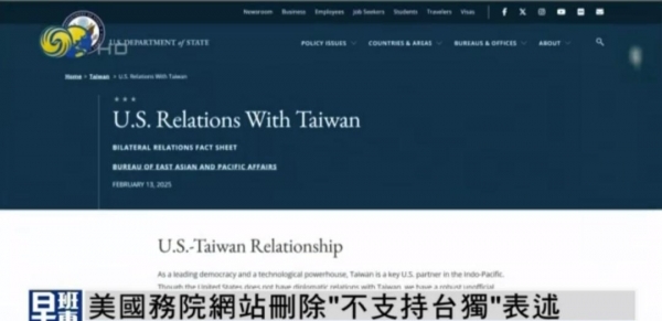 (美国国务院删除"不支持台独"的表述)