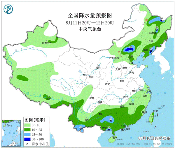 今天夜间到明天仍将是东北等地的主要降雨时段。预计,内蒙古中部和东部、黑龙江中西部、吉林中西部、辽宁北部和东部等地部分地区有大到暴雨,其中,黑龙江西南部和中部、辽宁东北部等地局地有大暴雨。