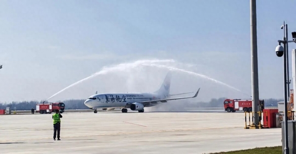 亳州机场用民航最高礼仪"水门仪式"迎接首架入亳航班。