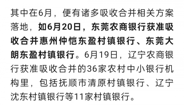 到今年6月21号,又有农村中小银行解散重组的消息。