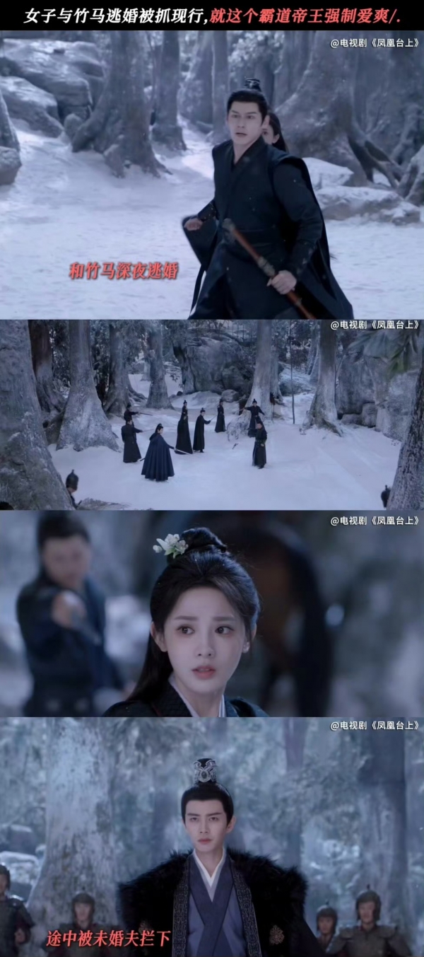 一场婚礼变成修罗场,一场私奔演成生死局--这就是《凤凰台上》开局即高能的剧情!萧焕与凌苍苍大婚在即,准皇后却与青梅竹马雪夜狂奔,被男主抓个正着。两人十指紧扣、踏雪疾驰的画面,竟被蒙上了一层凄美决绝的滤镜,而萧焕那一声"回来"中暗涌的愤怒与痛楚,更让这场三角关系张力拉满!
