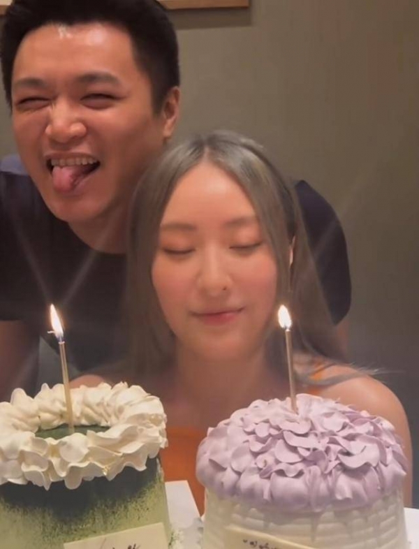 几位好友中不乏圈中人,比如大家熟知的TVB力捧小生朱敏瀚,陈滢作为寿星女,也是收到了两款不同样式的蛋糕,看得出好友们也是有花心思,对着蛋糕上点燃的蜡烛,陈滢开心的闭起眼睛许愿。