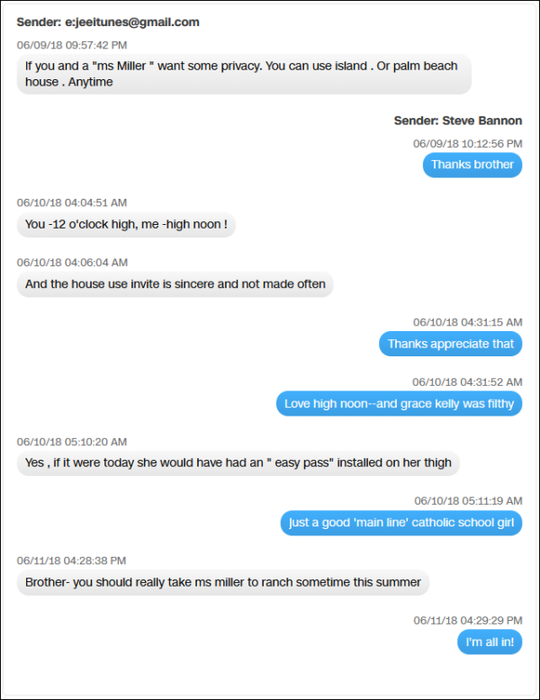 这些信息表明,班农和爱泼斯坦之间存在着一种"互惠互利"的关系:爱泼斯坦试图将班农介绍给欧洲的右翼领导人,而班农则介入参与媒体对爱泼斯坦受害者的调查。此外,两人还经常谈论特朗普及其核心圈子,爱泼斯坦称呼班农为"兄弟",并邀请他到自己位于加勒比海、新墨西哥州和佛罗里达州棕榈滩的房产做客。