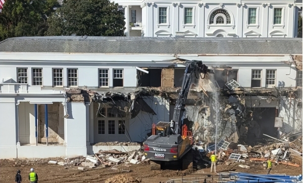 现场画面显示,白宫东翼楼南侧入口通道和窗户正在被拆除,显然特朗普并不是说着玩的,他是真的打算给白宫来个装修改造。
