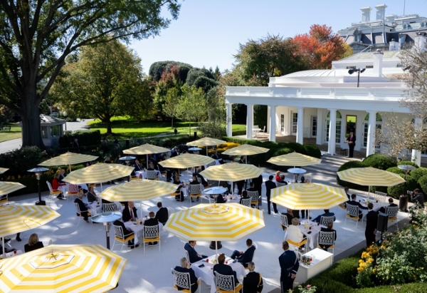巧合的是,当天特朗普就在社交媒体上介绍,他打算耗资2.5亿美元在白宫新建一个宴会厅,目前白宫东翼楼正在动工。