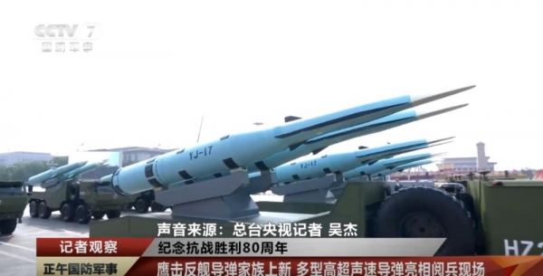 鹰击反舰导弹家族"上新" 多型高超声速导弹亮相阅兵现场