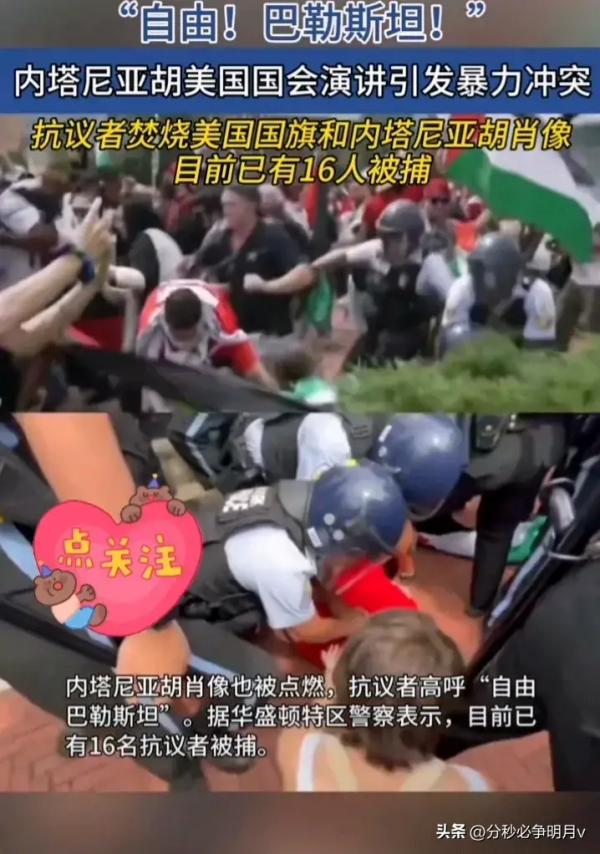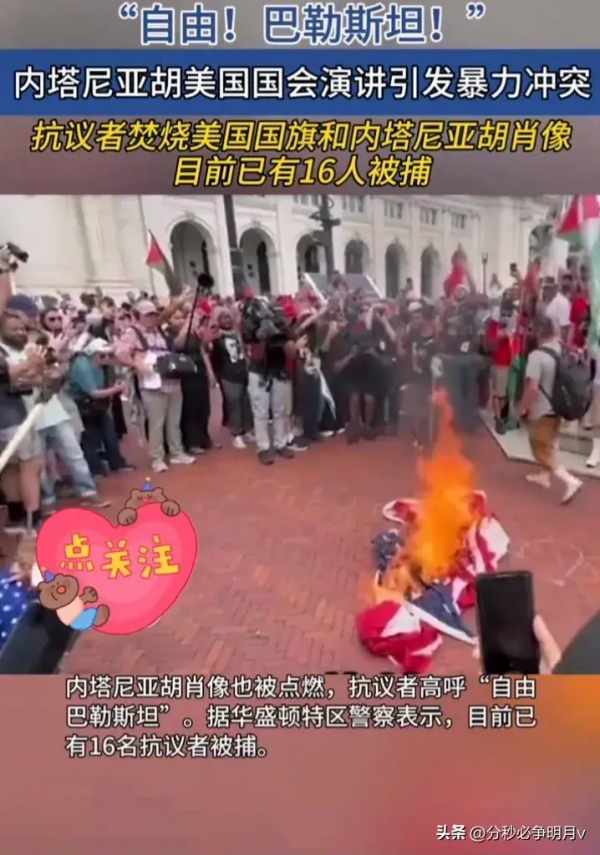 最近,美国的政治舞台上再度掀起波澜。以色列总理内塔尼亚胡在美国国会发表讲话,受到了不少议员的热烈欢迎。但就在国会内外,显然并不是所有人都买账。随着他的发言,抗议者们在华盛顿街头高呼口号,甚至焚烧美国国旗与内塔尼亚胡的肖像。这一幕,不仅让人震惊,也引发了人们对于当前局势的深思。