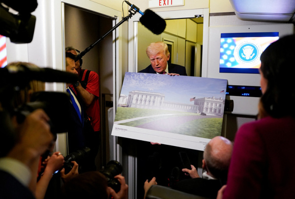 特朗普则坚持认为该项目不受任何监督的约束,他能够在没有严格审查的情况下继续推进。3月29日,他还在"空军一号"专机上向媒体介绍这一项目,"我认为,它将会成为全世界最顶级的宴会厅。"