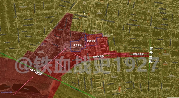 在城市内部,进入红军城的俄军突击队越来越多,虽然不是成建制的部队,但是众多突击队集结起来也有着不亚于主力部队的作战能力。目前,特罗杨达可能已被俄军完全拿下;该市行政大楼附近正在进行激烈的巷战,有一些未经证实消息称,行政大楼已被俄军攻占;在M30公路到中央市场一线作战的俄军突击队,集体向东推进了500米,中央市场的一部分俄军还沿着维利西亚街和马列维奇街一直推进到普希金街,推进深度达到了1公里。