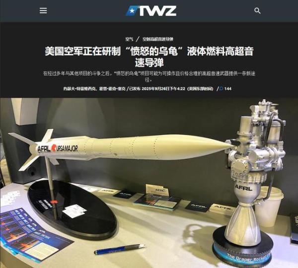 相比在我国高超大军中好比"百忙之中下一步闲棋"、并不需要派它"参军"的"飞天二号",今年9月,美国空军研究实验室公布的"愤怒乌龟"项目,把空射高超列装的希望,又寄托到一款依靠煤油/过氧化氢推进剂火箭助推,没有冲压发动机的空射靶弹身上:在液体火箭结束工作后,美国空军希望将原本靶弹的模拟弹头改为真正的战斗部。这只谁都觉得不适合军用的"愤怒乌龟",如今却企图成为美国空军几大高超项目接连失败后的"备胎"。