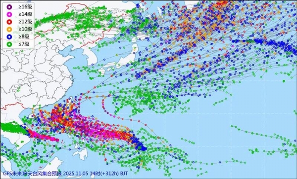 相较于"海鸥"的明确走向,尚未正式命名的"凤凰"(目前为关岛附近热带低压)更具不确定性。11月5日晚,日本气象厅因该热带低压结构尚未完全整合、强度未达热带风暴标准,推迟了命名流程,但这并未削弱其潜在威胁--欧美气象机构最新06z数据均显示,这个即将生成的台风可能发展为超强台风级别的"狠角色"。