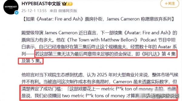 说实话,我挺为卡梅隆感到可惜的,他投入这么多资金,把技术做到顶尖水平,最后却输在剧本上,这不是特效的问题,是讲故事的方式跟不上这个时代了,现在的观众追求的是情感上的共鸣和思想上的交流,你不能指望用十多年前的思路去打动未来的年轻人,电影成本再高,如果故事本身空洞,观众自然会选择离开。