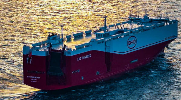 去年4月,比亚迪第四艘滚装船"BYD SHENZHEN"启航 比亚迪官网