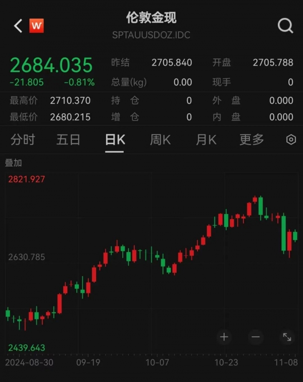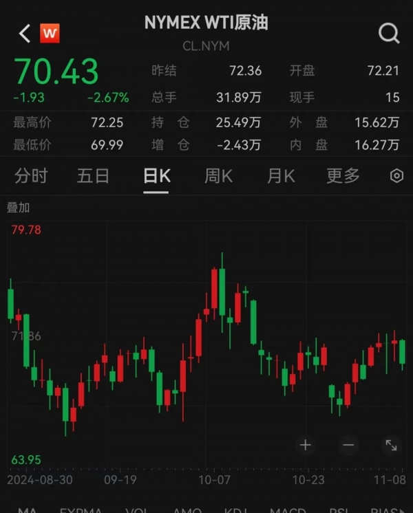11月8日,国际金价、原油价格双双下跌明显。