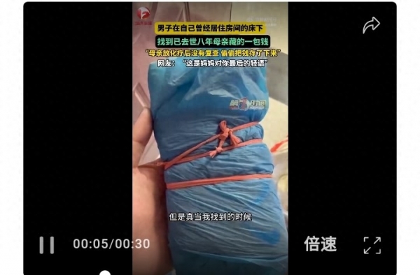 男子说,当年母亲查出癌症,做了放化疗之后,就再也没有去医院复查过。不是病好了,而是她把钱省了下来,一点一点攒着,藏在了儿子以前住的那间屋里。