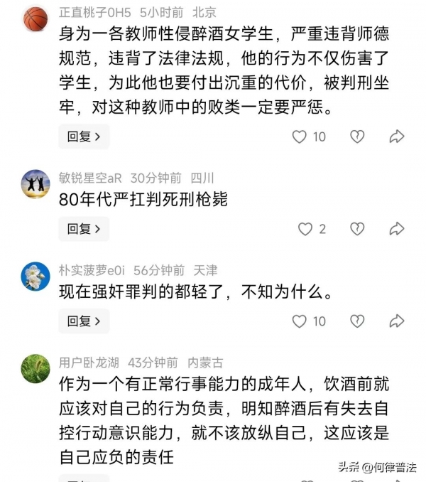 也有不少网友提出质疑:正常的女学生 会喝酒到3点吗?强奸犯应严惩!女生是去学习的,还是去享受的?给犯罪分子可乘之机是谁的错?
