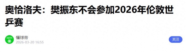 距离2026年伦敦团体世乒赛开幕仅剩一个多月(2026年4月28日),但中国男乒的卫冕之路却因一则重磅消息再添变数,据官方媒体《懂球帝》报道:德国乒乓球名将、世界冠军迪米特里·奥恰洛夫近日在一档播客节目中透露,中国乒乓球队的领军人物、大满贯得主樊振东将不会参加本次在伦敦举行的团体世乒赛!此消息一出,迅速引发了全球乒乓球界的广泛关注与热议。
