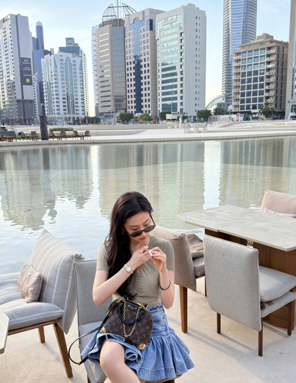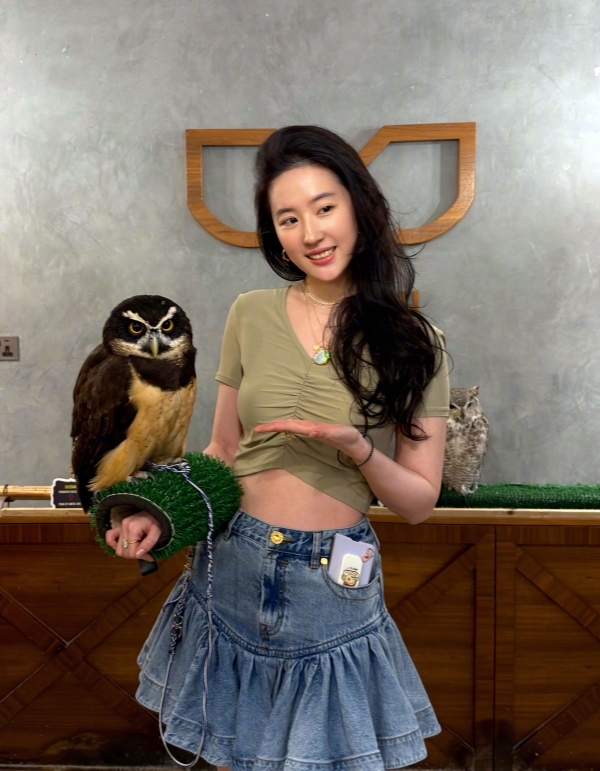 但比穿搭更动人的,是她由内而外的松弛状态。在巴黎的天台,她可以是气场全开的时尚女王,抬眼间是漫不经心的疏离感;在与猫头鹰互动的日常里,她又变回了那个眉眼弯弯、笑容明媚的少女,眼里满是纯粹与温柔;在迪拜的河畔,她低头摆弄饰品的模样,又多了几分烟火气的鲜活。这种 "不被定义" 的状态,正是刘亦菲最迷人的地方 -- 她从不被 "仙女" 的标签束缚,不迎合流量,不讨好市场,只是从容地活成自己喜欢的样子。