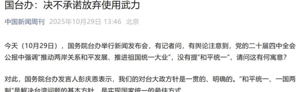 国台办对于"为何重要指导性文件中没了和平统一四个大字"进行了回应。