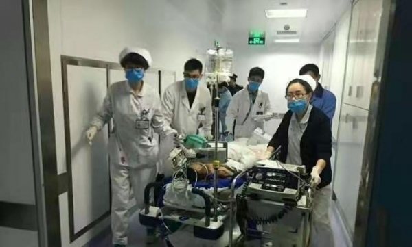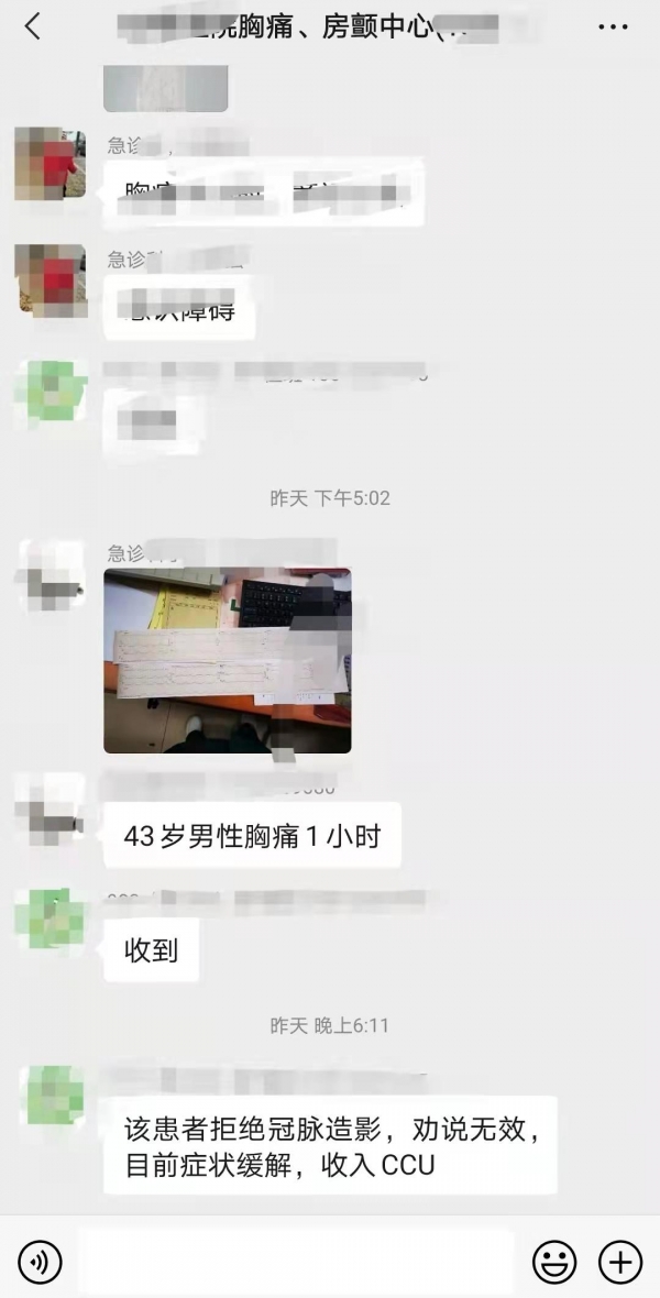 挂号处一看患者状态,都没让患者挂号,立即启动胸痛中心绿色通道,马上找医护人员把患者扶上抢救床,推进了抢救室。