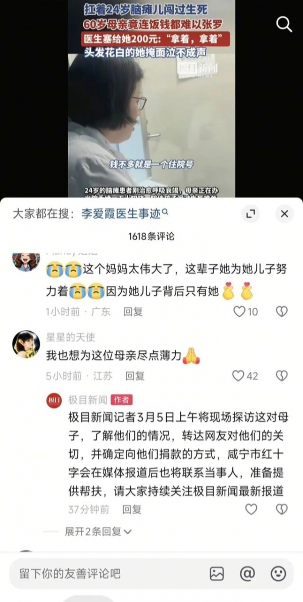 这看似"咆哮"的一幕,几天后刷爆全网。无数网友泪目,追问捐款渠道,想为这位"扛起儿子半生"的母亲尽一份力。这位医生是肺病科(ICU)主任李爱霞。她回应:自己嗓门大,是怕母亲拒绝,才用这种"强硬"的方式把钱塞出去。这200元,是医者仁心,更是对一位母亲咬牙硬撑的深深共情。