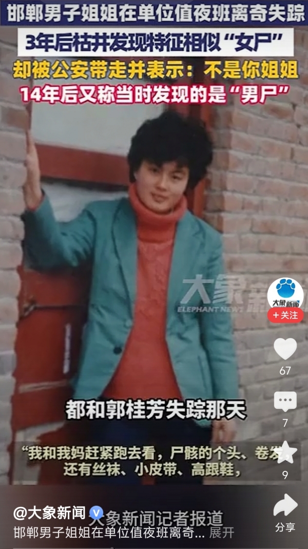 他姐姐在单位值夜班时离奇失踪,活不见人死不见尸。家人心急如焚,四处奔走呼号,期盼着奇迹发生。三年光阴悄然流逝,就在希望快要磨灭时,一口枯井里发现了"女尸"。衣物特征竟与失踪的姐姐高度相似,男子心中燃起一丝悲凉的确认。