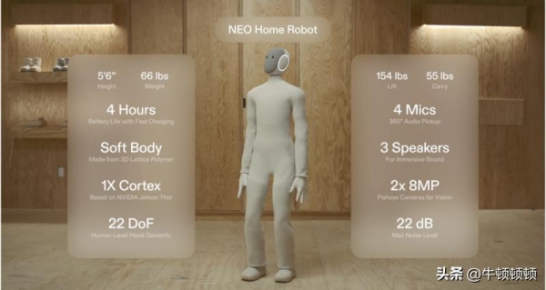 v这个Neo官方说它是"全球首款量产家用人形机器人"。听着挺唬人。但你细看功能介绍就发现,这压根不是成熟产品,就是个需要你配合它成长的实验品。