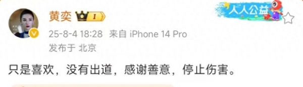 8月4日,演员黄奕在个人社交平台发文回应网传女儿铛铛出道当明星一事,她直言女儿学习唱跳只是爱好,并没有出道。黄奕还喊话外界停止对女儿的语言伤害,言语里满是对女儿的心疼。