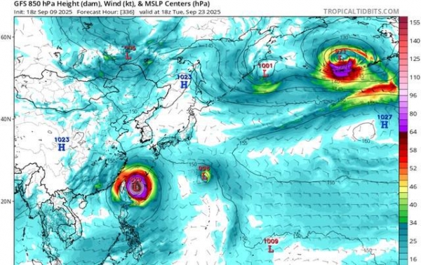 接下来要来的是第17号台风"米娜"和第18号台风"桦加沙"。这两个台风会往哪里走,现在还说不准。美国的天气预报说"米娜"会往西走,主要影响菲律宾和越南,不会影响我们中国大陆。但是欧洲的天气预报却说它有可能往北拐,可能会影响到华南或者海南。