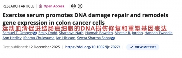 2025年12月,《国际癌症杂志》刊发的一项研究发现,仅10~12分钟的高强度运动,就能改变血液成分,提升DNA的修复能力,直接抑制癌细胞增殖。