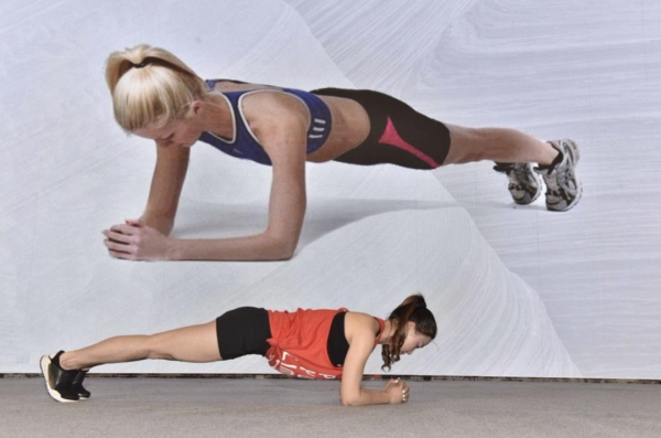 手臂弯曲,支撑在平面上,头、腰及脚后跟在一条直线上。最好在瑜伽垫上进行。该运动不限于30秒,可根据自身耐力逐渐增加支撑时间。
