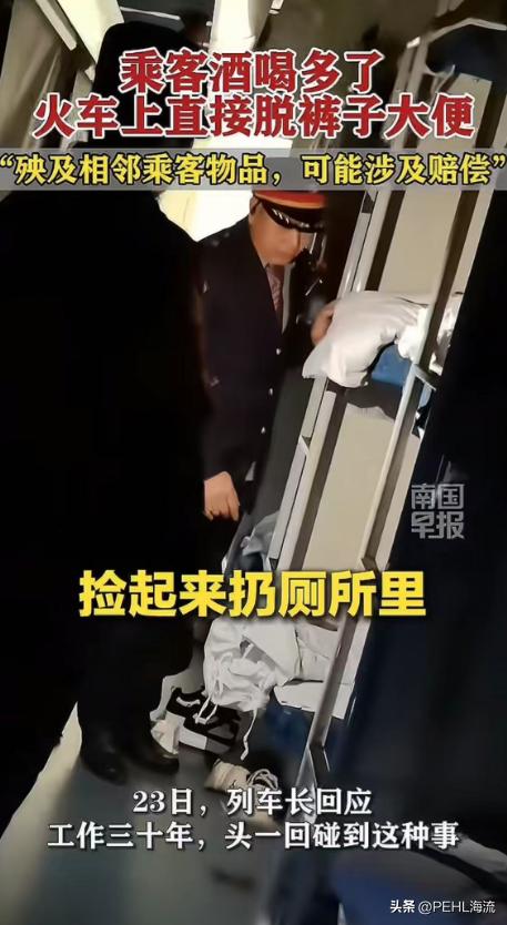 K168 次火车的卧铺车厢里,出了件能让人记一辈子的糟心事。一个男的喝了不少酒,喝迷糊失控了,直接脱了裤子就在车厢地板上拉了大便。这一下,他自己成了全车厢的焦点,旁边乘客的鞋子、包、行李箱也全都遭了殃。这么一闹,整节车厢瞬间飘满了味儿,让人根本没法忍,乘客们的反应就跟突然踩了雷区似的。